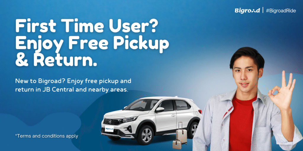 Explore Malaysia your way. Pick up your car in JB, enjoy smooth roads, local vibes, and the freedom to travel anywhere with Bigroad.